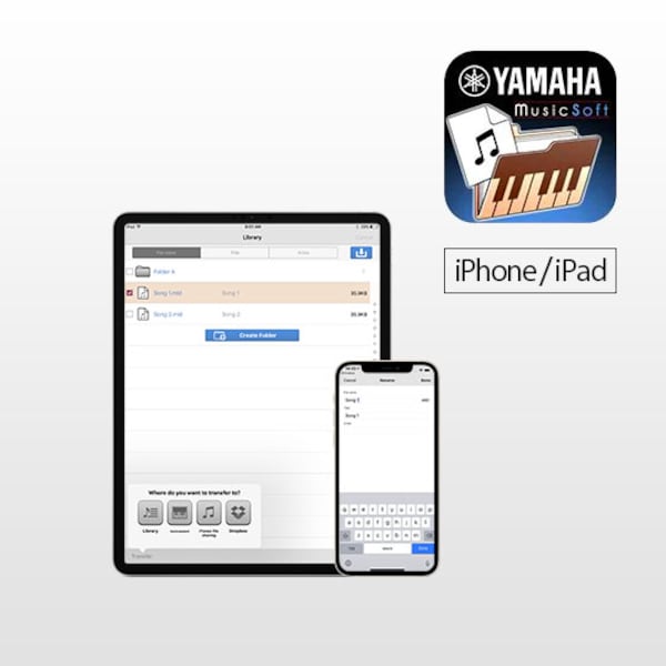 MusicSoft Manager te permite acceder directamente a la tienda online de Yamaha desde tu iPhone, iPad y iPod touch, adquirir contenidos, y después transferirlos a tu instrumento, haciendo que sea más fácil estudiar y tocar tus canciones favoritas.