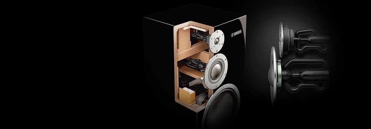 Aided by laser-scanning measurement and state-of-the-art FEM analysis, we developed a unique enclosure structure that effectively controls “box ringing” to a degree undetectable by human ears. Inside the enclosure, we installed proprietary reinforcing bars designed by simulating with pinpoint precision the way sound from the speaker units is transmitted to and emitted from the six surfaces of the enclosure. These reinforcing bars play an important role in perfectly synchronising the timing of acoustic resonances generated by the enclosure, which helps reproduce the natural acoustic vibrancy with amazing purity and clarity — offering a listener with an unprecedented level of immersive audio experience.