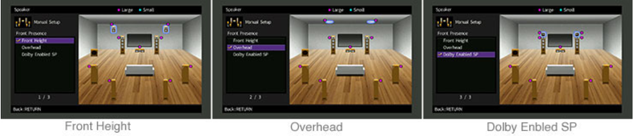 Yamaha provide multiple placement patterns for presence speakers that support Dolby Atmos, creating a sound field that’s ideal for your setup. Any layout can be appropriately reproduced, including the three-dimensional space of CINEMA DSP as well as Dolby Atmos.