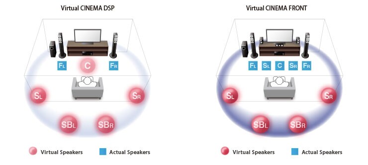 Virtual CINEMA FRONT Provides Virtual 7-channel Surround Sound with High Quality and Resolution