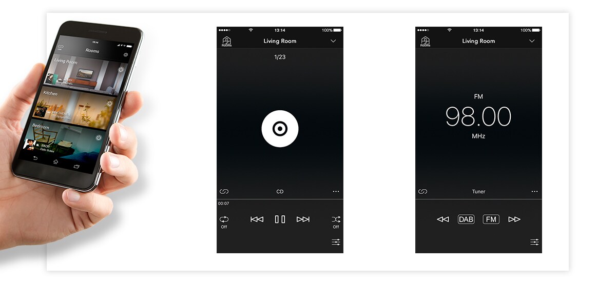 Simply tap the beautifully designed screen and take control of all the audio equipment and all the music in your home.