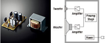 The power amplifier component, critical to powered speakers, utilizes a discrete configuration analog amplifier. It produces strong, expansive sound, all in a bi-amp system featuring a 45W woofer and 25W tweeter. By directly driving each unit individually, it produces powerful sound while maintaining the feeling of high S/N ratio.