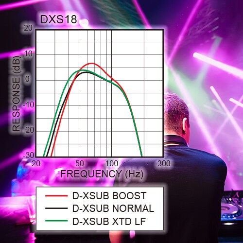El procesamiento de D-XSUB potente te da control total de las frecuencias graves. El modo NORMAL te da la respuesta de frecuencias graves idealmente balanceada, y el modo BOOST reproduce graves más pujantes y dirigidos. El modo XTENDED LF reproduce graves de frecuencias aún más bajas con graves estruendosos que producen una extensión de frecuencias graves inauditas en gabinetes pequeños. Lleva tu sistema de rango completo al siguiente nivel con la versatilidad y potencia de los subwoofers activos de la serie DXS.