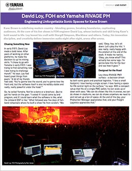 In early 2023, David Loy made a bold move. After years of working on other platforms, he made the decision to up his mixing skills. “I chose to go with Yamaha in early 2023. I was trying to find something new. I was trying to challenge myself,” he says. Loy had heard great things from peers: “A lot of my friends had said, ‘You’re gonna love the sound, you're gonna love the front end, but the software itself is also incredibly stable and really, really powerful under the hood.’”