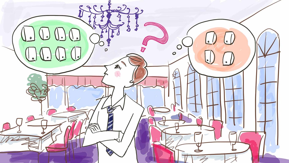Es posible que no piense que el espacio de su tienda es ruidoso, pero en este contexto, el ruido incluye las voces de los clientes/invitados, el ruido de los empleados y los sonidos de la cocina o el equipo, por ejemplo.