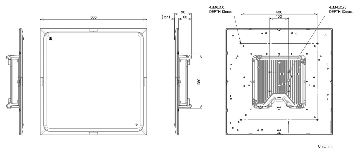 | General | Dimensiones | W560 mm × D560 mm × H90 mm (Incluye panel de micrófono / saliente: 22 mm) | |