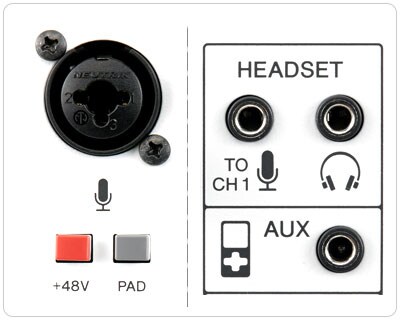 AG viene equipado con una alimentación phantom de entrada que ofrece, así como una entrada de auriculares, que le da la opción de usar un micrófono de condensador profesional, o unos auriculares ordenador convencional.