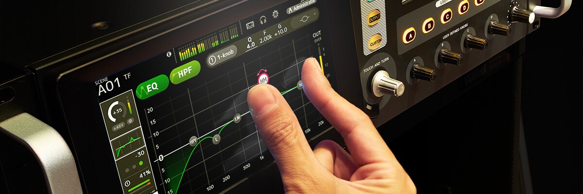 Al desarrollar la serie TF, los ingenieros de Yamaha partieron de la base de las interfaces de nuestros mezcladores de alta gama ya existentes, y añadieron control intuitivo en una interfaz optimizada para el control por panel táctil, algo que ya es frecuente en muchas aplicaciones. Permitiendo que la mayoría de las operaciones se lleven a cabo mediante el panel táctil exclusivamente, la innovadora interfaz de la serie TF pronto se convertirá en lo más natural del mundo para multitud de usuarios. Tanto si se tiene experiencia con otras mesas digitales Yamaha como si se ha trabajado con consolas digitales de otras marcas, o con mesas analógicas, o incluso si nunca antes se ha manejado un mezclador, las mesas TF son capaces de llevar al usuario a conseguir resultados rápidamente y sin esfuerzo gracias a un flujo de trabajo fluido y eficiente. Y los controles físicos que rodean al panel táctil potencian aún más la versatilidad y la precisión operativa.