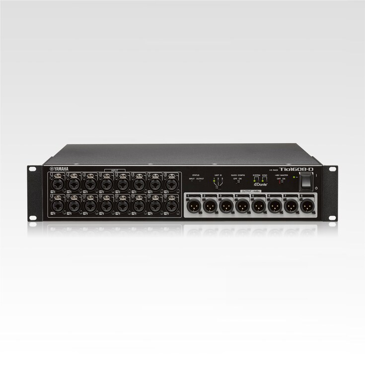 Tio1608-D es un rack de E/S equipado con protocolo de red Dante, con 16 entradas de micrófono/línea y 8 salidas de línea. Los racks Tio disponen de los mismos preamplificadores de micrófono D-PRE™ con memorias recuperables que la serie TF, proporcionando un sonido extraordinariamente natural y musical. En combinación con las mesas de la serie TF, los racks Tio pueden conectarse utilizando hasta tres unidades, con una configuración rápida y fácil. Nota: Se requiere una tarjeta NY64-D opcional.