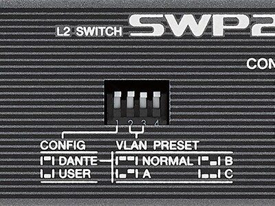 Las redes simples de Dante no son difíciles de configurar y operar, pero a medida que la complejidad de la red aumenta, los switches utilizados deben optimizarse para el funcionamiento de Dante a fin de lograr la máxima estabilidad. La configuración de QoS, IGMP Snooping y otros parámetros en un switch inteligente puede ser una tarea compleja, que requiere un conocimiento especializado que dominan más los técnicos de TI que los ingenieros de audio. La serie SWP2 permite recuperar una configuración optimizada de Dante simplemente pulsando un switch DIP. No se requiere experiencia o capacitación.