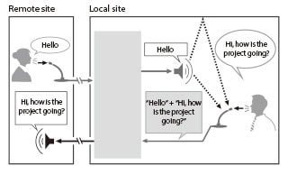 En situaciones de conferencia remota, el micrófono local puede recoger la voz de la ubicación remota que emana del hablante local y devolverla a la ubicación remota además de la voz local. El componente AEC puede prevenir este problema de manera efectiva. Vamos a ver cómo funciona.