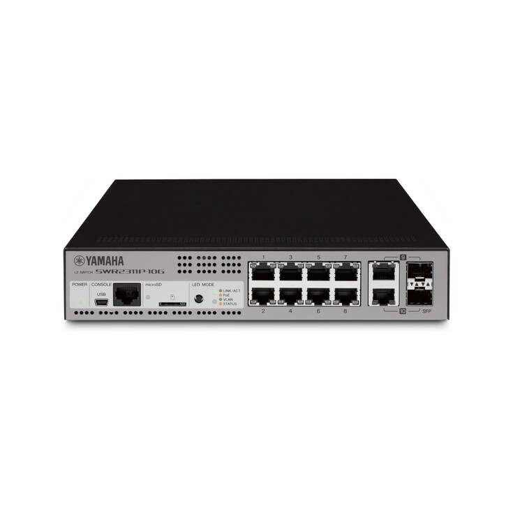 El conmutador de red de la serie SWR2100P equipado con diez puertos RJ45.