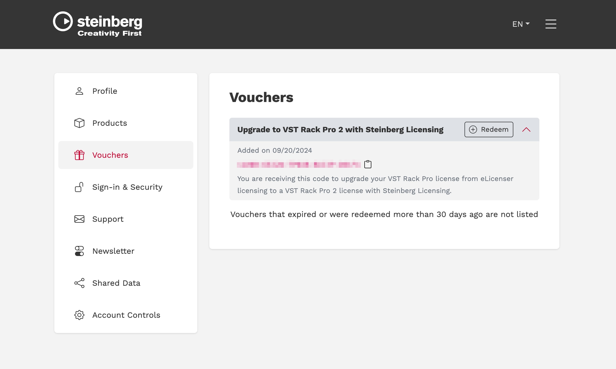 4. Canjea la licencia de actualización en MySteinberg.