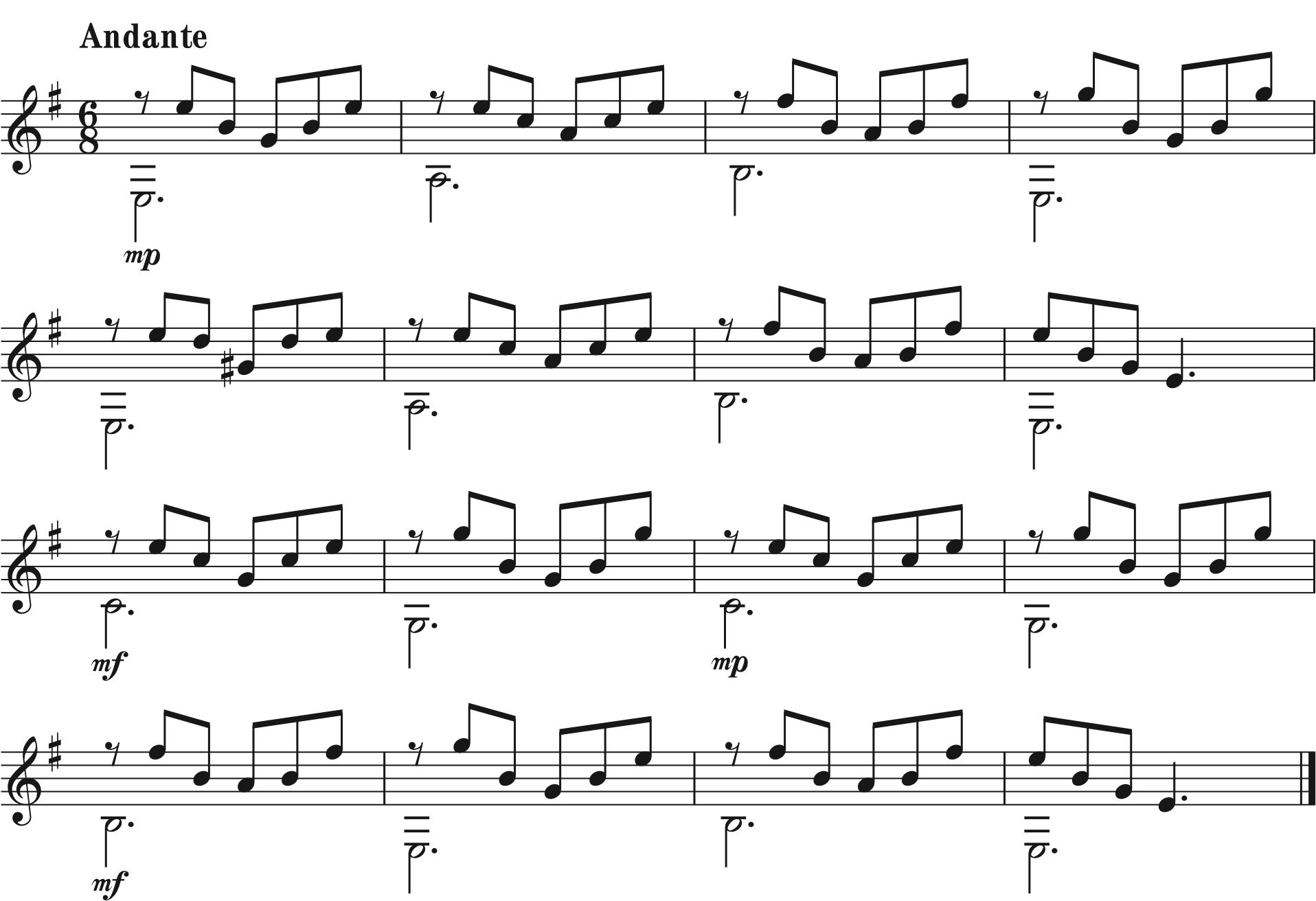 - La última nota ascendente / descendente puede durar más tiempo que las otras notas.