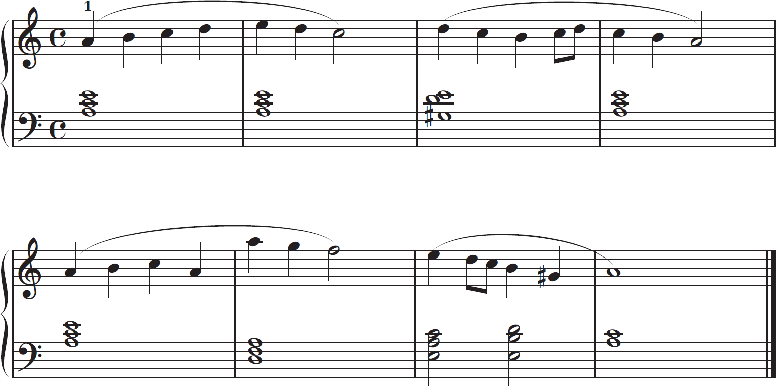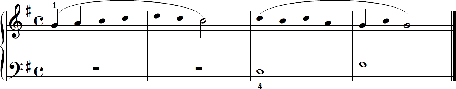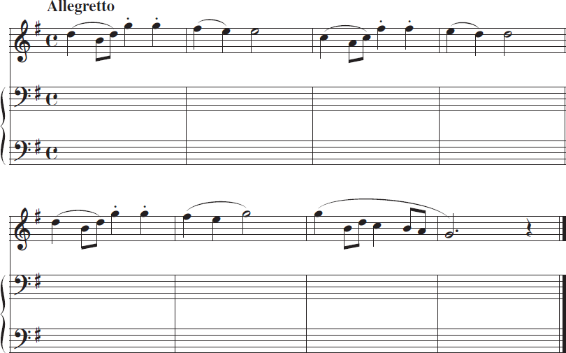2 Mientras el examinador toca la melodía, los candidatos escuchan mientras observan la partitura. Se dan las notas del bajo.