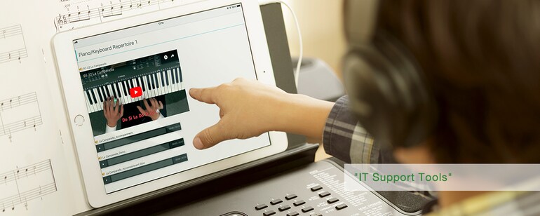 Los libros de texto contienen una variedad de piezas famosas (repertorio clásico, como, Für Elise, Turkish March; estándares de jazz; canciones de Disney; etc.). Para todas las piezas, Yamaha realiza arreglos y atractivos acompañamientos, proporcionando una experiencia similar a tocarlas junto con una orquesta o banda y brindando a los estudiantes una visión del entorno de cada pieza, mientras se nutre su creatividad.