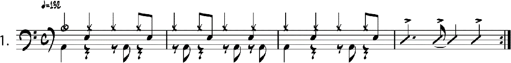 2. El examinador dejará escuchar al alumno el metrónomo a la velocidad indicada en los ejercicios durante 2 compases y después lo quitará.