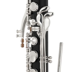 La clavija se adhiere al instrumento en un ángulo, por lo que es fácil sostener el clarinete solo con la clavija y el pulgar de la mano derecha.