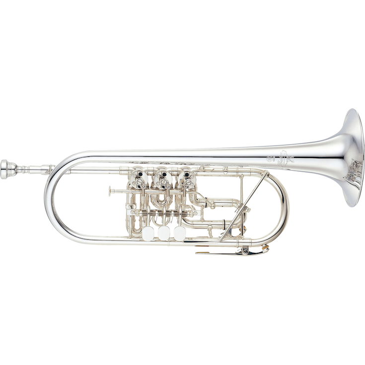 El cono del tudel de la trompeta de válvulas giratorias presenta un remate óptimo que aporta una afinación extraordinaria y un timbre oscuro y potente.