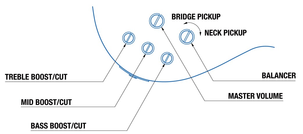 | Controles | Master Volume, Pickup Balancer, 3-Band EQ(Bass, Middle, Treble) | ||