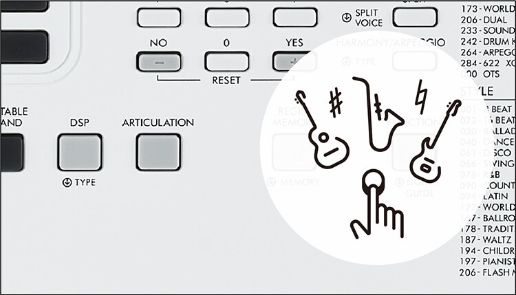 - Una variedad de funciones útiles, incluso 205 estilos de auto acompañamiento dinámico que dan fuerza a tus ejecuciones