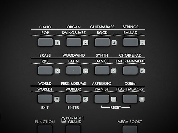 Yamaha renovó el panel de control y la pantalla LCD, eliminó el teclado numérico y agregó botones de acceso directo a categorías.