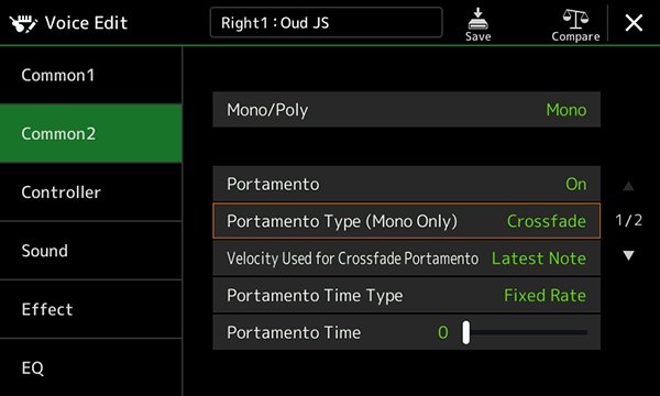 - Portamento Crossfade con velocidad y parámetros relacionados de tiempo