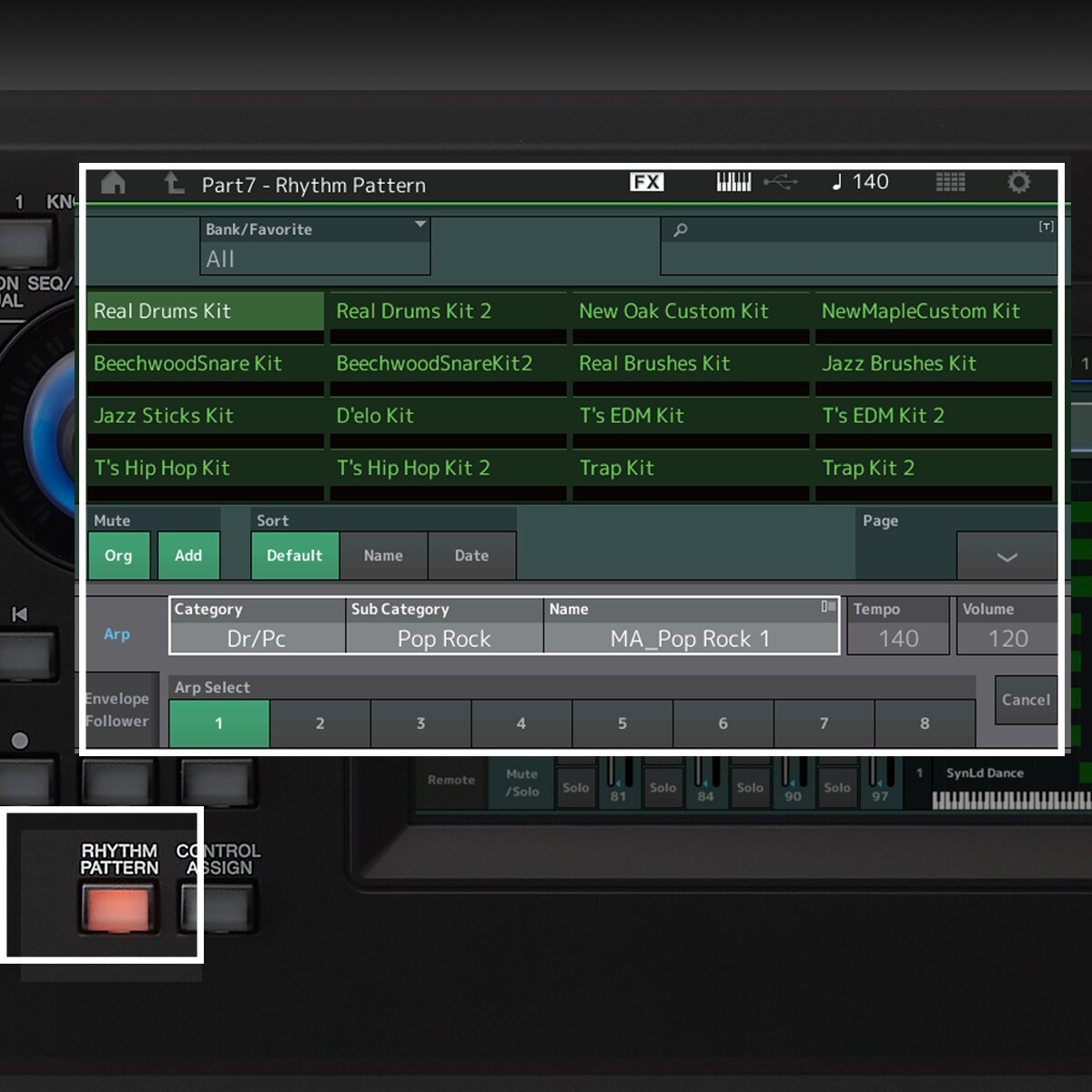 ¿Otra vez está llegando tarde el baterista? El patrón del ritmo del MODX+ es como una batería electrónica con acceso fácil a miles de patron con un botón en el panel frontal. Añade un ritmo rápidamente al escribir canciones, practicar o mientras esperas que el baterista arme la batería, o llegue.