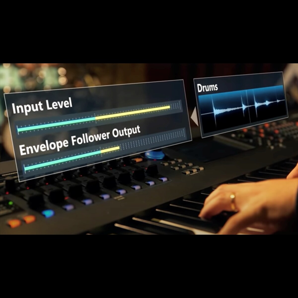 El Seguidor de envolvente convierte audio en una fuente de control para controlar prácticamente cualquier parámetro del sintetizador. Por ejemplo, un bucle de batería podría activar parámetros de efectos para un buen ritmo o una grabación de voz podría controlar varios parámetros para un sintetizador "parlante". El audio puede incluso ser una fuente "en vivo" a través la entrada A/D.