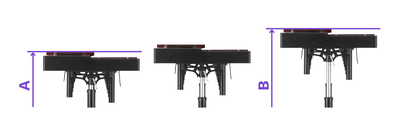 Distancia desde donde el marco toca el suelo hasta la parte superior de las barras de tono accidental Altura mínima: 69 cm (A), Altura máxima: 88 cm (B)