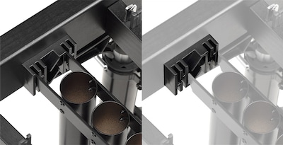 El componente que recibe la tubería está diseñado para evitar que la tubería resonadora se caiga, incluso si la misma se mueve debido a la vibración durante el transporte.