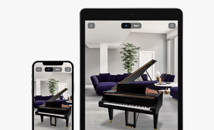 No solo podrás visualizar el piano a través de realidad aumentada, también puedes tocar el modelo 3D del piano para escuchar cómo suena.