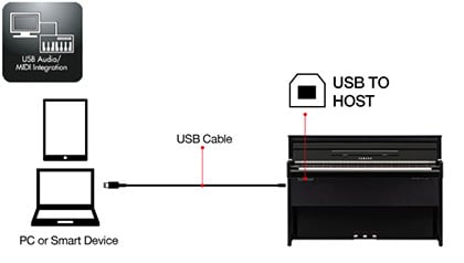 Now compatible with USB Audio/MIDI. Just connect with a single USB cable for audio/MIDI playback with a PC or iOS device.