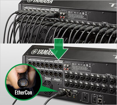 Para los usuarios que desean tener una expansión en entradas y salidas, TF Series tiene la capacidad de lograrlo utilizando la tarjeta NY64-D y hasta 3 equipos Tio1608-D conectados en cascada. Este sistema conectado por medio de cableado para red CAT5e permite tener niveles muy bajos de latencia, alta calidad en el sonido y sin tener que consumir tiempo transportando un snake analógico, grande y aparatoso.